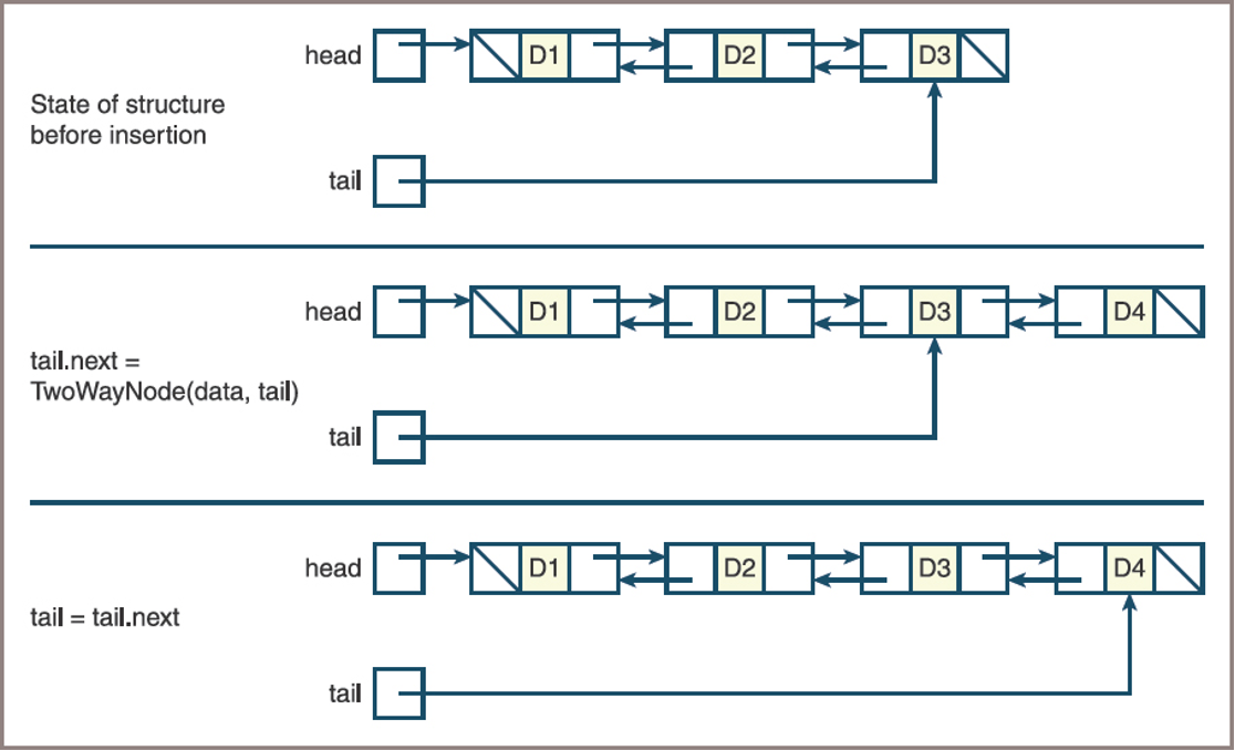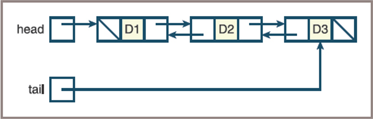 Note also the presence of a second external tail pointer that allows direct access to the last node in the structure