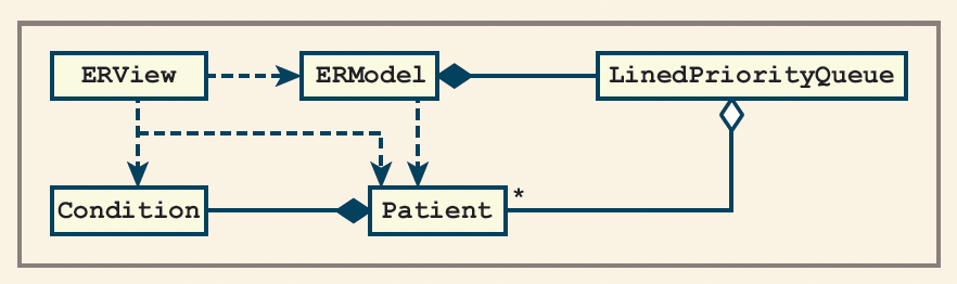 • Implement model to contain Condition, Patient, ERModel classes