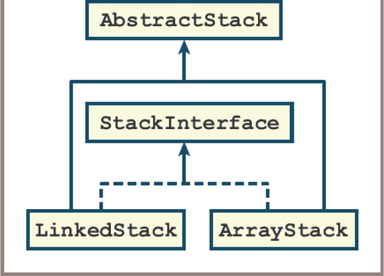 AbstractStack class, which in turn is a subclass of AbstractCollectionAbstractStack class, the size variable, and the methods isEmpty, __len__, __str__, __add__, and __eq__ from AbstractCollectionArrayStack and LinkedStack are _init_, peek, push, pop, clear, and _iter_The stack resources in the collection hierarchy