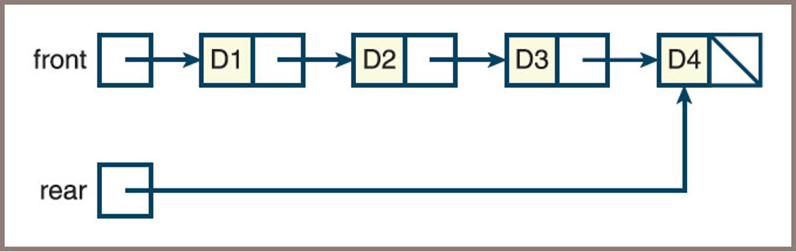 rear to the new nodefront and rear pointers must both be set to Nonerear, that points to the last item at position n − 1